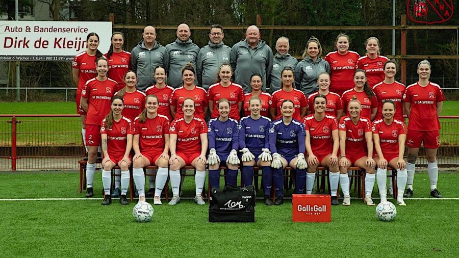 Na een half uur spelen moet Simone van Leur het veld geblesseerd verlaten en zij wordt vervangen door Pepine Baeten. Kansen voor Laura Bos, Kim de Weerd en Merel Tiecken leveren geen doelpunten op en zoals zo vaak valt de goal dan aan de andere kant. Nog voor rust straft RKHVV een fout in de defensie bij Alverna af en brengt door Shania Meiland de stand op 1-1.