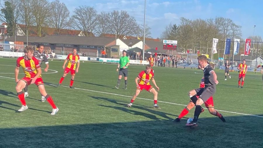AWC moet er even van bijkomen, maar pakt snel de draad weer op en na enkele mogelijkheden scoort Daan de Bruijn in de 25e minuut de aansluitingstreffer, de 2-1. Voor de pauze schiet AWC nog net voorlangs, en ziet daarna nog de bal via de binnenkant van de paal het veld weer inkomen en Juliana ziet de bal op de lat afketsen via onze keeper Tijn.