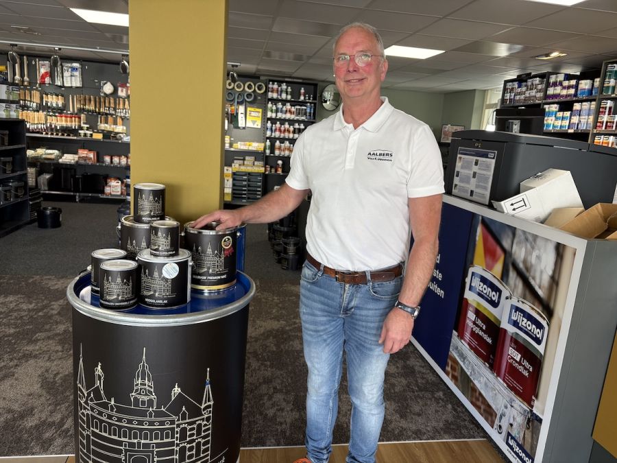 Wie de Wijchense verfwinkel aan de Kruisbergseweg binnen loopt, ziet tevens de prachtige PVC-producten van Boessenvloeren uitgestald staan. “Onze bedrijven vullen elkaar perfect aan”, laat Alex Boessen weten. “Ja, wie met zijn woning bezig is moet vaak verven of is bezig met de vloer”, vult Johan van Aalbersspeciaalzaak voor Verf en Wonen aan.