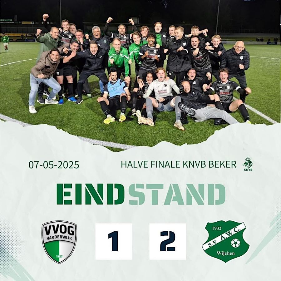 Op woensdag 7 mei speelde AWC tegen VVOG Harderwijk (4e Divisie) met als inzet deelname aan de grote KNVB Beker. De ploeg won in Harderwijk met 1-2 door doelpunten van Daan de Bruin en Safa Kizir. Volgende seizoen kan het nu zomaar zijn dat op Sportpark De Wijchert Feijenoord, Ajax of PSV verschijnt!