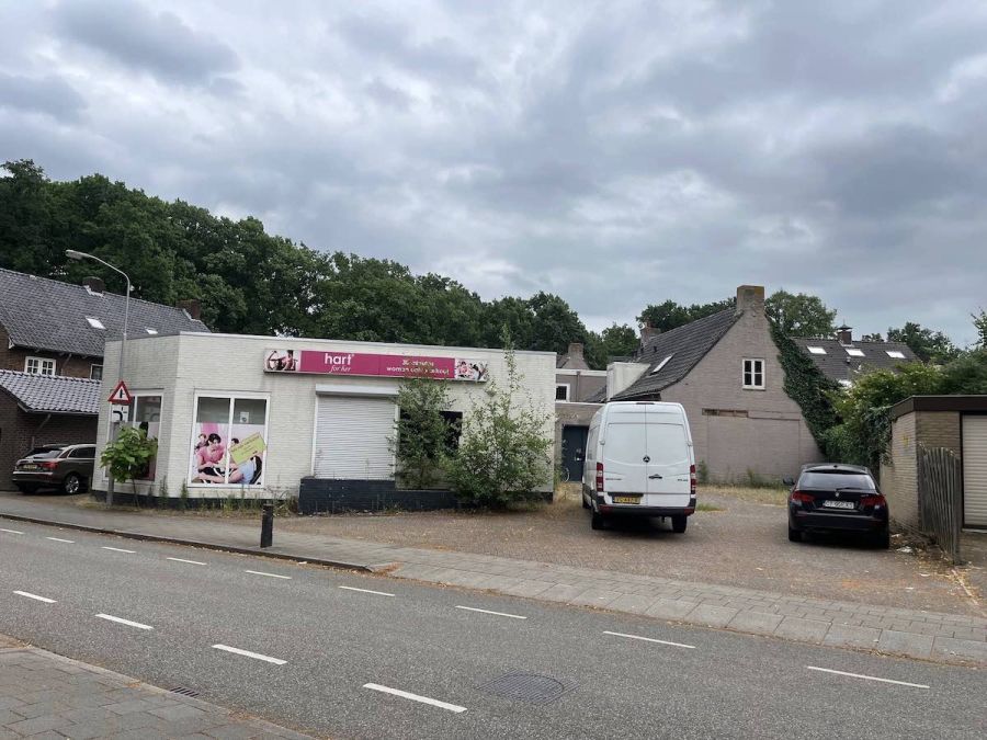 Foto 3: Verloederd aanzicht gezien vanaf Jumbo-terrein aan de Herenstraat. Op plek verloederde gebouwen en tweekapper komen straks 51 appartementen.