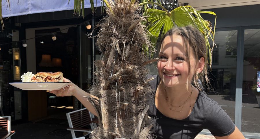 Schaduw genoeg op het gezellige terras op de Wijchense Markt bij Piet! Dé plek voor een heerlijk kopje koffie met huisgemaakte appeltaart waar Imke (foto) een flinke portie liefde insteekt. Piet pakt ook voor u gemakkelijk alle ingrediënten voor een overheerlijke cocktail, een gin-tonic, een lekker wijntje en de meest heldere bieren met een lekker bitterballetje erbij. Dat is toch zeker weer genieten in Wijchen!