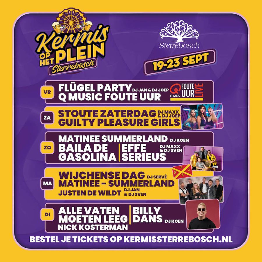 Op vrijdag start de kermis feestelijk met de grote Flügelparty met Q-Music Het Foute Uur, DJ Jan en DJ Joep.