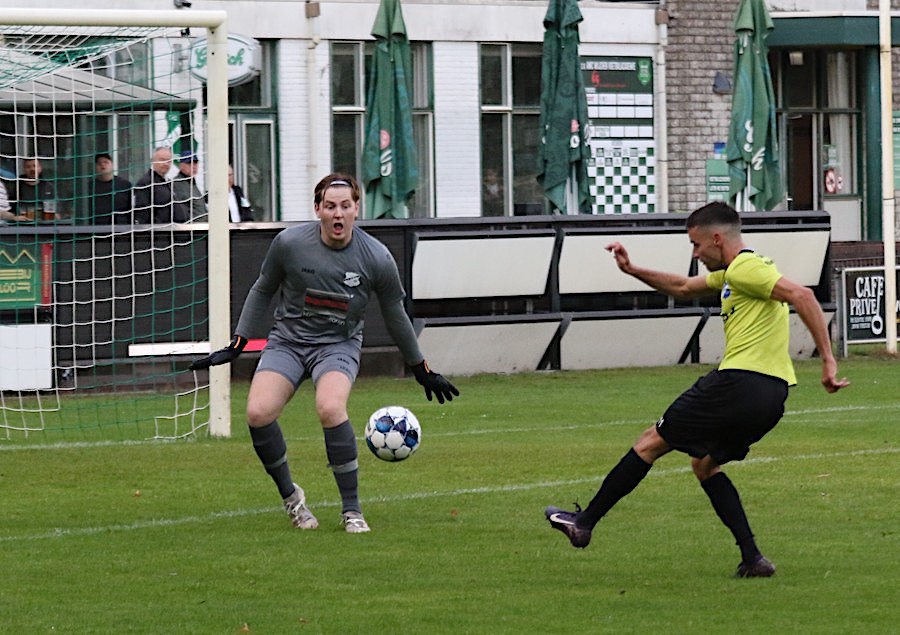 AWC probeerde daarna nog van alles om gelijk te komen, maar dat lukte niet, ook al kreeg Jeroen van Schoonhoven de beste kans, maar hij schoot recht op de keeper.