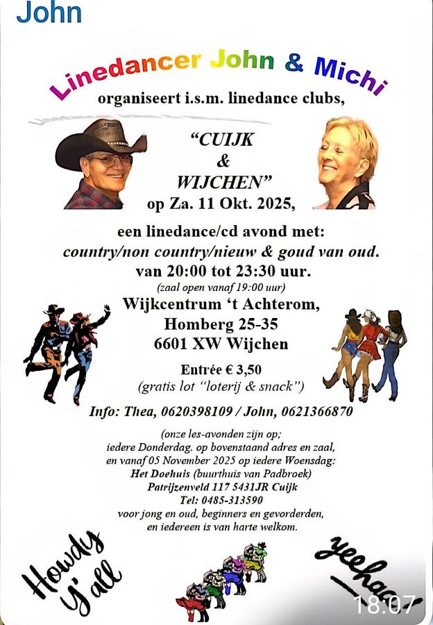 Linedance/CD-avond in wijkcentrum 't Achterom op 11 oktober