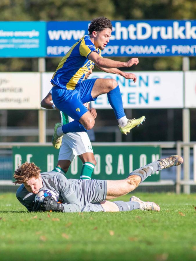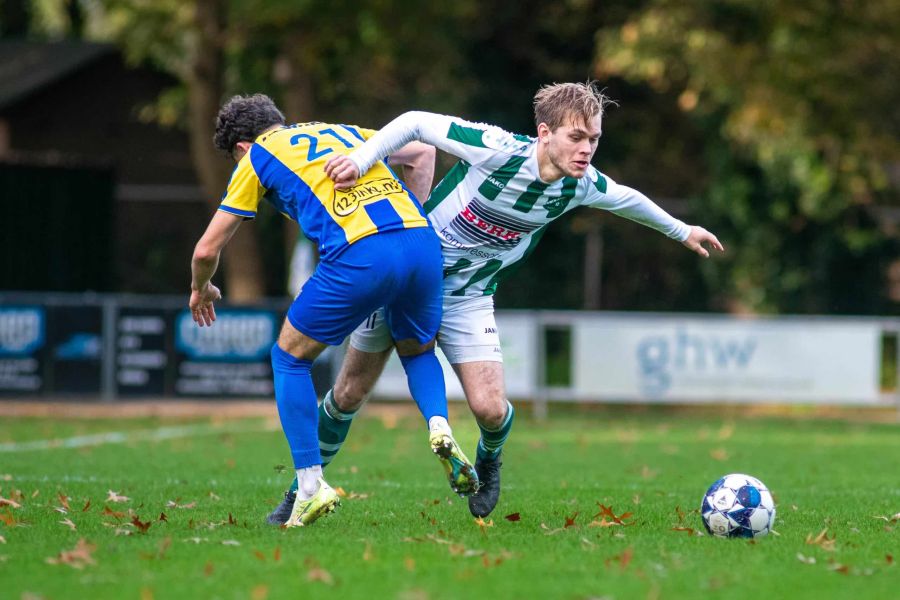 Zondag speelde SV AWC thuis tegen Valkenswaard dat onder de Wijchenaren staat. Het was een mooie herfstdag met een lekker zonnetje. Het verschil in teams is in deze klasse niet groot. De gasten uit Valkenswaard begonnen goed en kreeg een opgelegde kans op de 0-1, maar de spits schoot de bal naast. In de 7e minuut weer een kans voor de gasten, maar Tijn komt prima uit en keert de bal.