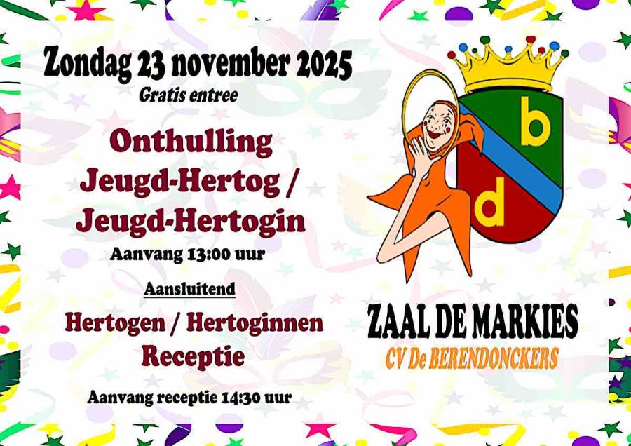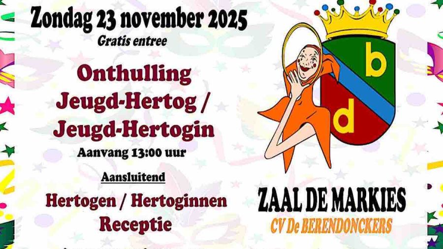 Op zondag 23 november staat er opnieuw een bijzonder moment op de agenda bij carnavalsvereniging De Berendonckers: de onthulling van de allereerste Jeugd-Hertog(in)groep van ’t Vênnegat.