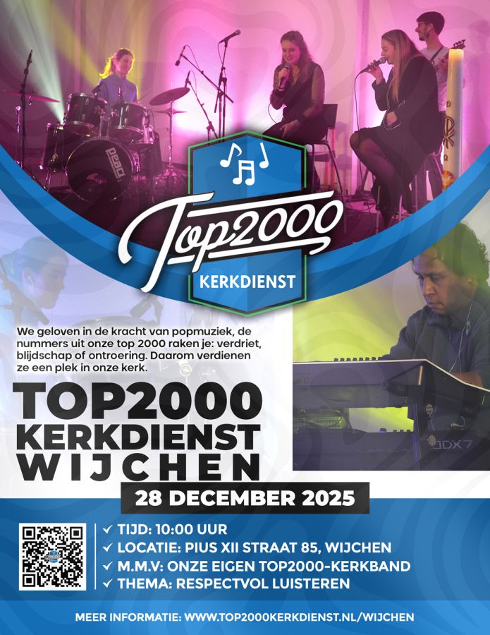 Op zondag 28 december 2025, 10.00uur gaat het weer los in de Schakel in Wijchen! Met het thema “Respectvol Luisteren” worden er prachtige liederen live gespeeld door onze Top2000 band, afgewisseld met enkele clips en korte stukjes tekst die samen de rode draad vormen. De band bestaat uit een aantal jongeren die jaarlijks dit ten gehore brengen in een professionele setting.