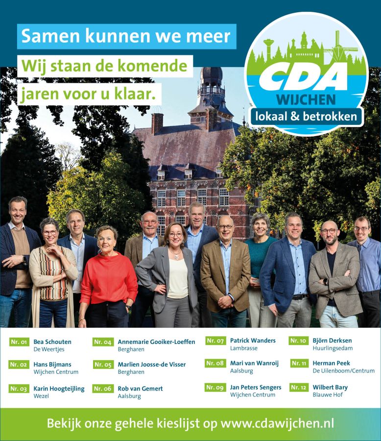 De kieslijst van het CDA Wijchen voor de gemeenteraadsverkiezingen in maart is bekend. Het is een lange lijst vol met bekende namen, vertrouwde en nieuwe gezichten verdeeld over heel Wijchen en de kernen.