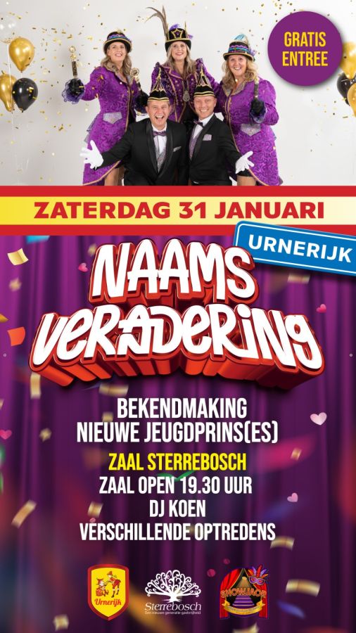 Iedereen in met plezier uitgenodigd om samen met prinses Monique en haar gevolg en het bestuur een feestje te komen vieren. Met in het begin van de avond de onthulling van de jeugdprins(es), en later op de avond de naamsverandering waarin Wijchen naar het Urnerijk veranderd.