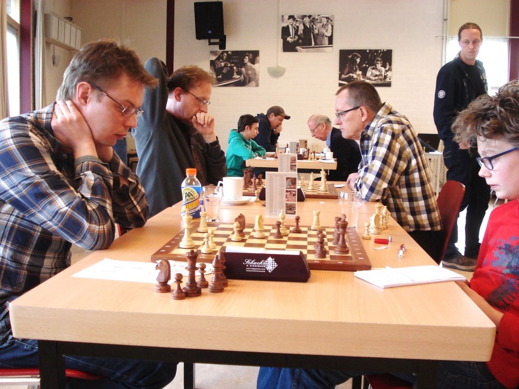 Het Kasteel zonk echter nog dieper in het moeras. Sjaak Laurant zag een paard van tegenstander Van der Gouw in zijn koningsstelling verschijnen. De actieve stukken van de witspeler werden Laurant uiteindelijk teveel. De vlag moest worden gestreken. Ook teamleider Jorik Quint deelde in de malaise. Quint had aanvankelijk de betere stelling tegen Plomp, maar verloor materiaal en ook dat had verlies van de partij tot gevolg. Kasteelschaker Maarten Rossen kent een moeilijk schaakseizoen. Tegen Boonstra leek Rossen de betere kansen te hebben. Rossen gaf echter pardoes een paard cadeau waarna het snel mis ging. Ook Rossen moest uiteindelijk capituleren. Hiermee werd door de Wijchenaren een enigszins geflatteerde maar monsterlijke 7½ - ½ nederlaag geleden. Een enorm pak slaag voor de hoofdmacht van Het Kasteel! Hopelijk kunnen de kasteelschakers zich snel herstellen van deze dreun zodat in de laatste twee wedstrijden een beter resultaat kan worden behaald.