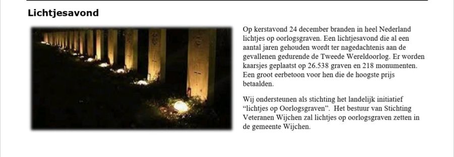 Op 24 december 2025 heeft het bestuur van Stichting Veteranen gemeente Wijchen lichtjes gezet op de oorlogsgraven in de gemeente Wijchen.