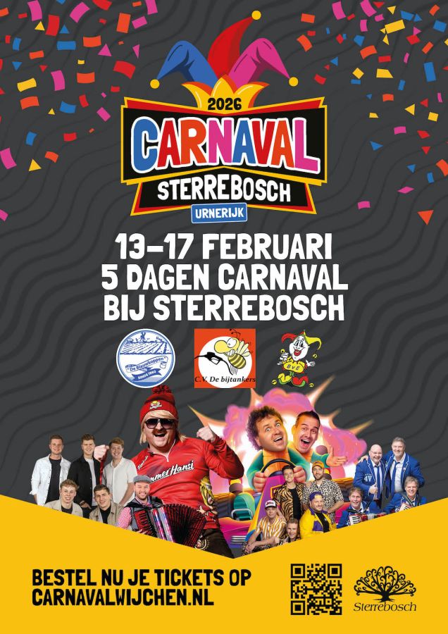 Carnaval vier je natuurlijk in het Urnerijk bij Sterrebosch. Van 13 t/m 17 februari is er weer een bomvol programma vol met artiesten, DJ’s en de echte Wijchense gezelligheid. De kaartverkoop voor de feestavonden is inmiddels gestart.