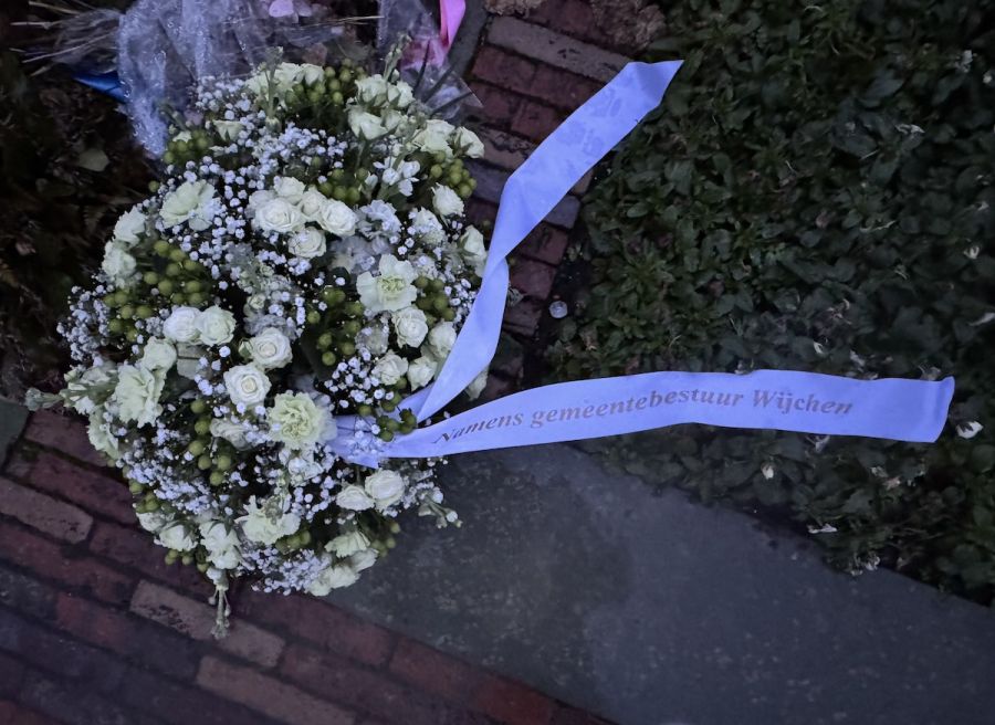 Bij het monument is ter nagedachtenis van de omgekomen militairen een bloemstuk gelegd.