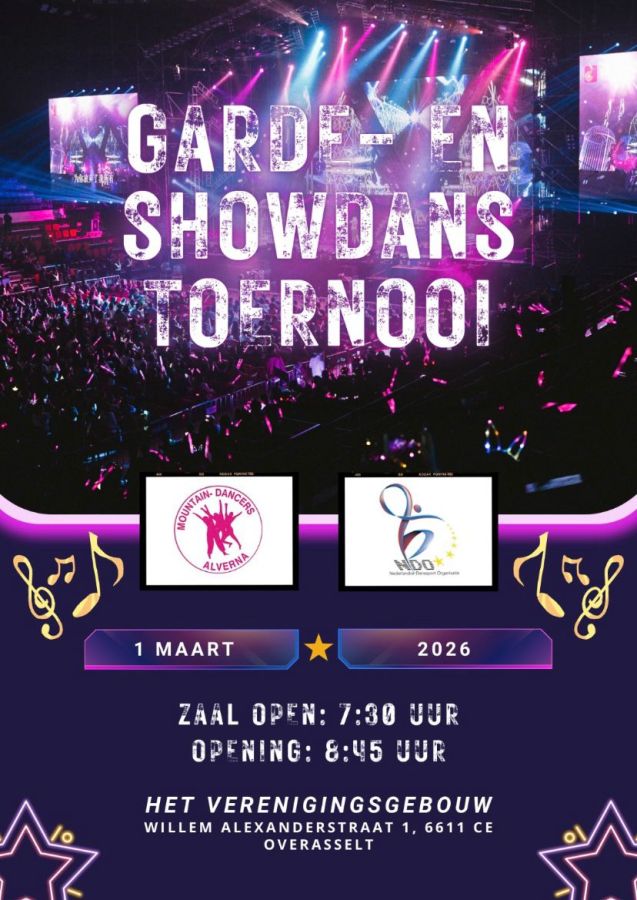 De Mountain Dancers uit Alverna organiseren hun jaarlijks danstoernooi op zondag 1 maart a.s. Het belooft een mooie dag te worden met een divers aanbod van vele dansen.
