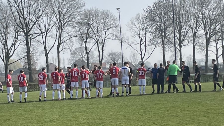 Over de wedstrijd kunnen we kort zijn, het spel was mede door het erbarmelijke veld ‘niet om aan te gluren’. Wegspringende ballen, vreemde stuiten, voor een ‘kunstgrasploeg’ moeilijk mee om te gaan. De gastheren hebben voetballen op zo’n veld allang opgegeven en hanteerde consequent de lange bal. Voor rust waren de kansen dan ook schaars, 3e min; Mattijn Arts na goede actie op de lat, 20e min; uitval Avios met kopkans, 40e min; kans Nick van Heel, had meer tijd dan verwacht, 44e min; Tim van Deelen maakt kans Avios onschadelijk.