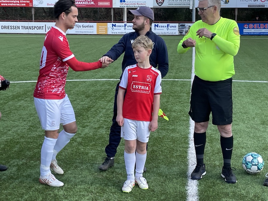 Wat in potentie op een mooie dag had kunnen uitlopen, is voor Alverna in een sombere dag geëindigd. Alles was voorhanden, mooi weer, Dj voor de derde helft en een tegenstander waar wat tegen te halen viel werd verondersteld. Maar het liep anders, beginnend met een scheidsrechter die constateerde dat een doel te laag was??? Met behulp van vrijwilliger Jan van Haren was dat snel gefixt, dan een vipje die niet meteen scoort, in de derde minuut een foutje en kans voor Niftrik, kortom geen goed begin. Dat had Jair Roos in de zesde minuut allemaal weg kunnen poetsen, hij kreeg een niet te missen kans op een voorzet van Niels van Tintelen maar miste toch. Vlak daarna nog een kans voor de plaaggeest van vandaag Joost Lepoutre, maar deze keer kon Marc van Aalten nog redding brengen. Dan een rustige periode qua kansen, rond het halfuur weer een kansje, de voorzet van Niels van Tintelen was net te scherp voor Sam Jansen. Volgt nog een kans voor Niels zelf, en dan is Lepoutre slimmer dan Bram van de Burgt en Marc van Aalten en scoort schitterend de 0-1. Slechts een paar minuten later was het bijna weer gelijk, Bram van de Burgt zijn voorzet wordt door Sam Jansen tegen de paal gegleden. In dezelfde minuut kansje voor Kjell Wortelboer na goede actie van Bram en Sam. Dan 45e minuut, bal over de verdediging, keeper komt, verdediger en spits lopen door, hotseknots tegen elkaar en bal in doel 0-2 en rust.