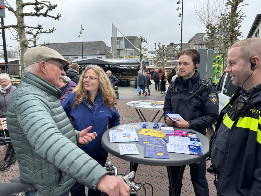 Samen spraken ze met inwoners over online veiligheid en deelden ze flyers uit met praktische tips om online oplichting te herkennen én te voorkomen.