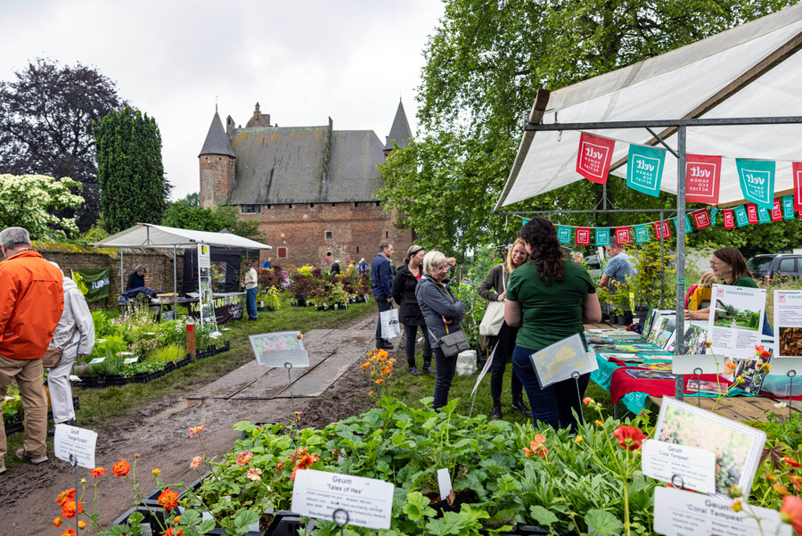 Ongeveer 40 gedreven Nederlandse en Belgische kwekers komen met hun eigen, vaak zeldzame collecties vaste planten, een-jarigen, struiken en bomen. Dit jaar zijn er ook een aantal nieuwe biologische kwekers.Niet alleen de markt zelf is de moeite waard, maar ook de voor de gelegenheid opengestelde kasteeltuin en het middeleeuwse kasteel.
