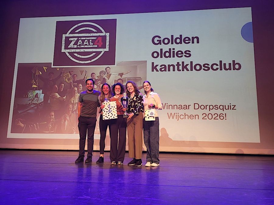 Golden Oldies Kantklosclub won zoals gezegd Dorpsquiz Wijchen 2026! De 2e plaats ging naar Chouffe Chouffe en de Barkabouter en Watkanjedoenmet5000euro eiste de derde plek op.