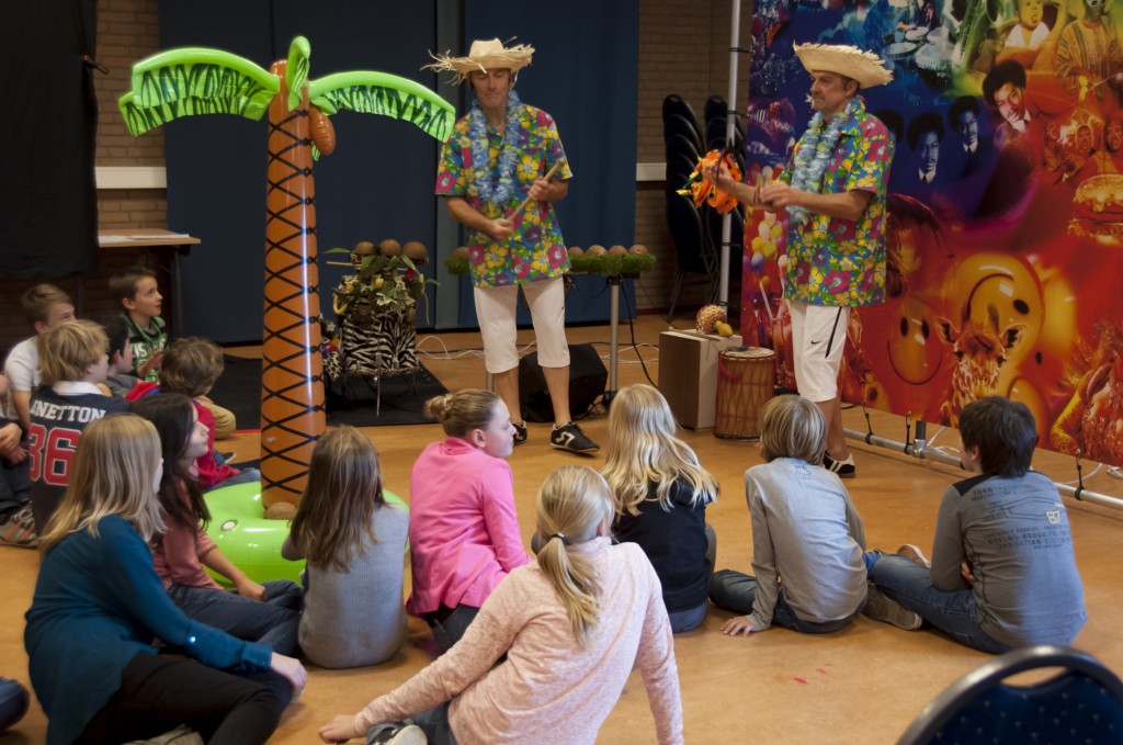 Paul Nas en Jan Wilms gaan, samen met de meedenkkinderen, een muzikale voorstelling maken over een kokosnoot. Daarvoor nemen ze een metersgroot doek met meer dan 100 foto’s mee. De kinderen kiezen een foto en een geluid. Met het beld en het geluid maken ze een verhaal waarin de kokosnoot een rol speelt. Al deze verhalen komen terug in de voorstelling om 16.00 uur. Bij grote belangstelling wordt de voorstelling twee keer gespeeld. De voorbereiding van deze voorstelling begint al op 22 april. Dan kiezen de kinderen de foto en het geluid en gaan ze schrijven aan het verhaal. Vrijdagmiddag 1 mei wordt er geoefend en wordt het stuk uitgevoerd. Toegang: gratis.