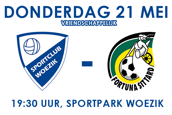 Op donderdag 21 mei is op Sportpark Woezik de oefenwedstrijd Woezik 1 – Fortuna Sittard. Het Wijchense team van trainer Ton Kosterman neemt het op tegen de formatie van Peter van Vossen. De wedstrijd begint om 19:30 uur en de toegang is gratis.