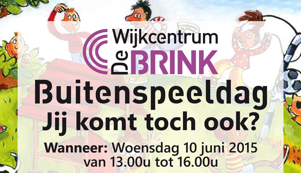 Woensdag 10 juni is weer de landelijke buitenspeelmiddag. Wijkcentrum de Brink doet dit jaar ook weer mee, samen met basisschool