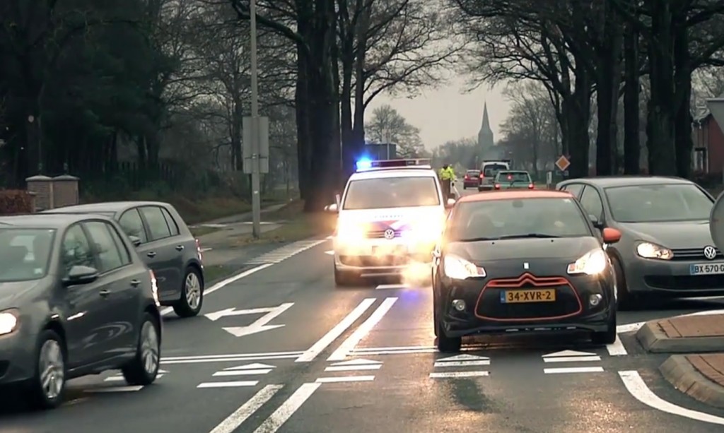Stel je eens voor: je staat voor rood licht op een kruispunt. Er komt een voorrangsvoertuig aan. De rijstrook naast je is bezet. De vraag is nu: wat doe je? Op de campagnesite