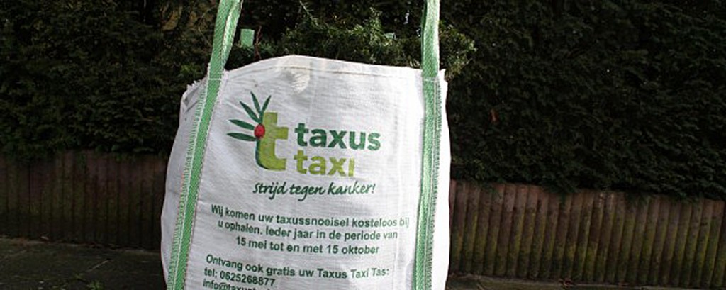 www.taxustaxi.nl. Zij vragen u alleen de jonge scheuten (de groene delen van de taxus) aan te bieden. Taxus Taxi haalt het taxussnoeisel van 15 mei tot en met 15 oktober gratis bij u op.