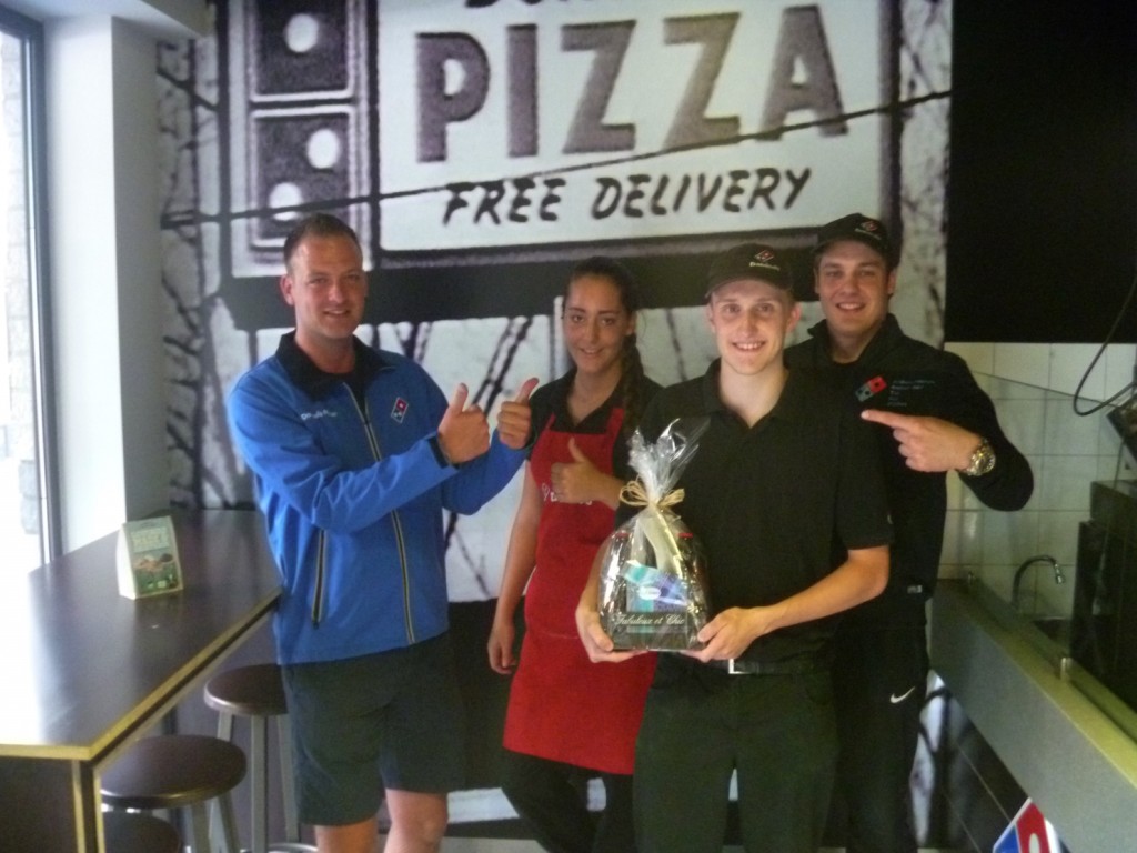 Zijn opleiding was behaald en hij gaat nu een BBL-opleiding doen in de techniek. Eén ding weten we zeker: ze zullen er een supercollega bij gaan krijgen bij zijn nieuwe bedrijf. Namens bedrijfsleider Michelle Bandel, de eigenaren Rick van den Heuvel en Sebastiaan van de Leemput en natuurlijk heel team Domino's Wijchen wensen wij je nog een topvakantie toe en enorm veel succes met de nieuwe stap in je leven!"