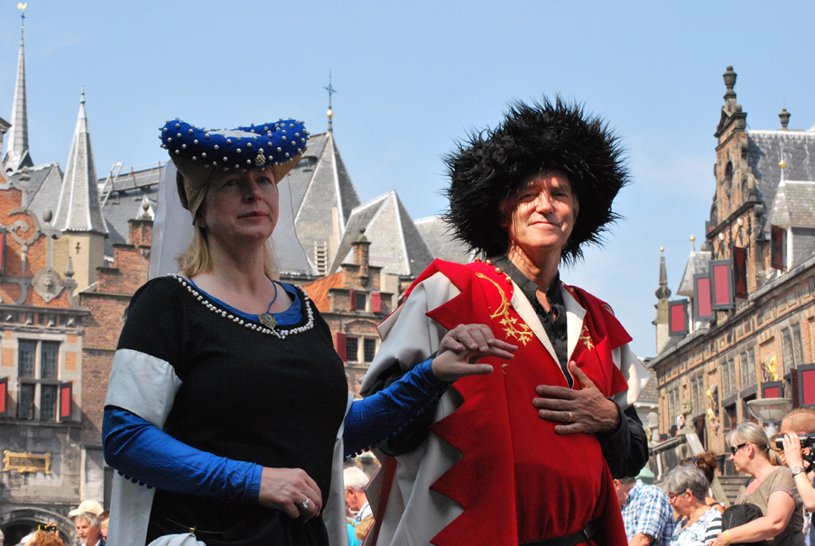 De middeleeuwse markt op 3 en 4 oktober rondom en in Kasteel Hernen, zal op de zondag bezocht worden door een aantal hoge edelen samen met hun gevolg, die de reis vanuit Nijmegen hebben ondernomen om deze ambachtsmarkt te bezoeken. Het is heel speciaal, dat deze groep van het Gebroeders van Limburg festival hun kleding buiten hun eigen evenement om komt laten zien.