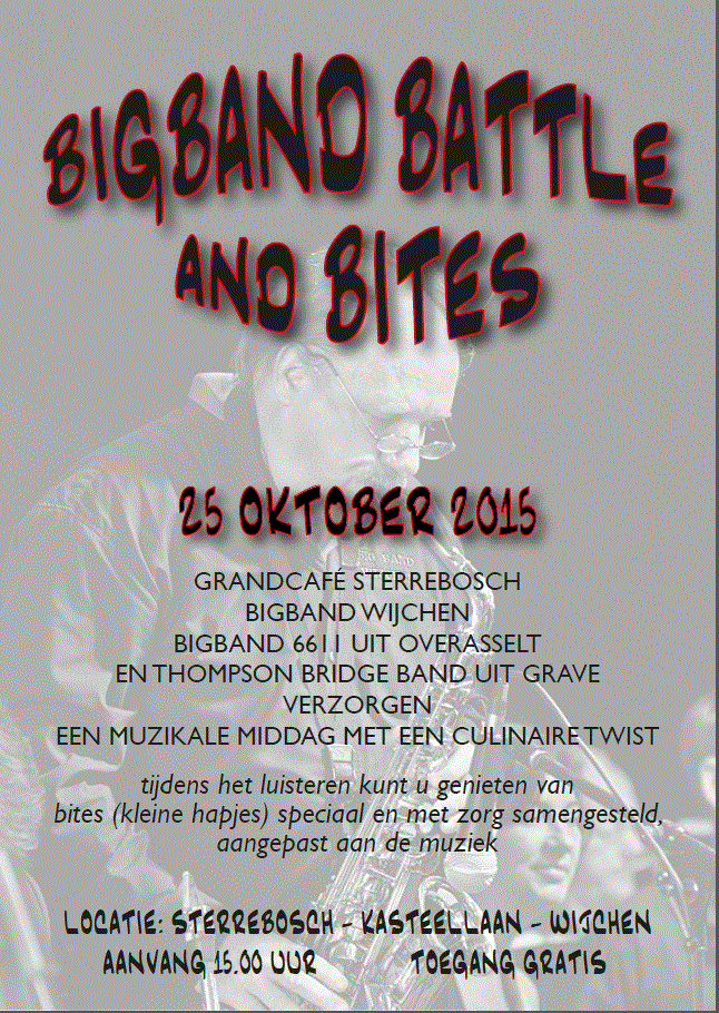 BigBand Wijchen, Thompson Bridge Band Grave en BigBand 6611 uit Overasselt spelen zondagmiddag 25 oktober vanaf 15.00 uur bij Sterrebosch in Wijchen.