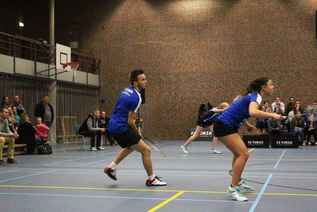 "Yannic en Roy begonnen hun dubbel tegen het sterke duo Michiel Kruijt en Joran Kweekel. In de eerste set was het verschil duidelijk te zien (9-21), maar in de tweede set gaf het Smashing duo niet zo snel over (18-21). Ella en Judith verloren de eerste set van Daisy Bommeleyn en Marlies Baan (18-21), maar zij wonnen de tweede (21-16). In de derde set kwamen er wat veel foutjes van onze kant en deze set was dan ook iets sneller voorbij dan gehoopt (11-21). Tussenstand: 0-2.