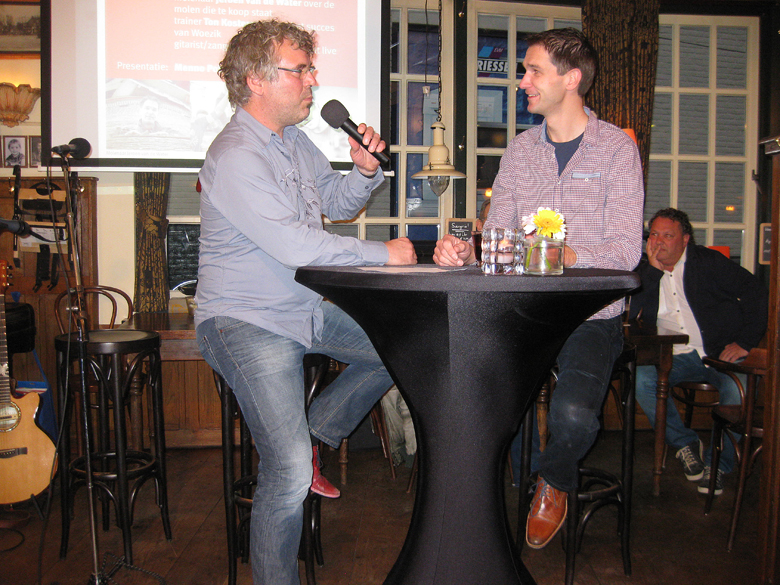 Een impressie van het Gelderlander Nieuwscafé in Café Anneke op woensdag 28 oktober. Menno Pols interviewde Ton Kosterman, trainer van sc Woezik, Jeroen van de Water, molenaar van de Wijchense molen en Jordi Repkes, een opkomend talent/zanger/songwriter die binnenkort zijn eerste album uitbrengt. Jan den den Bovenkamp uit Batenburg las een column voor over Wijchense en andere zaken.