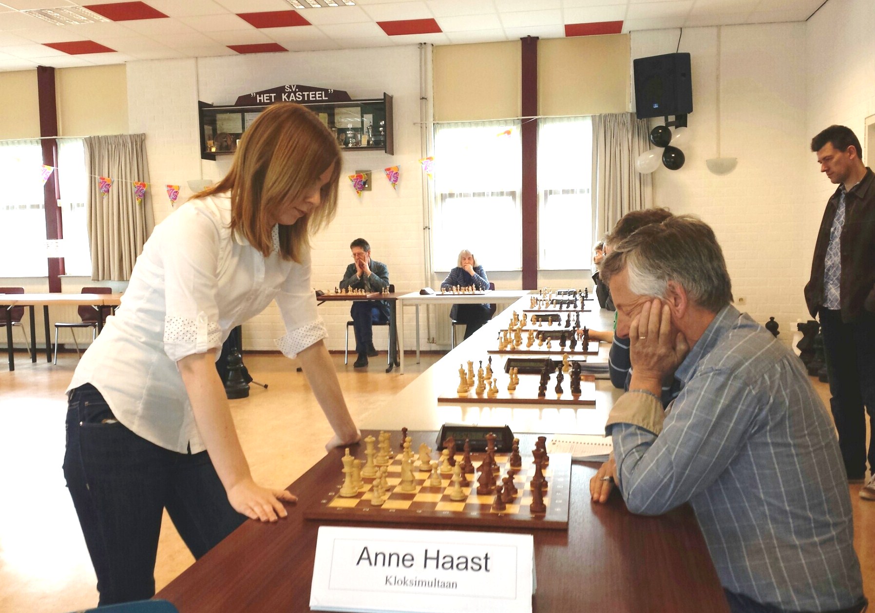De onlangs afgestudeerde PABO studente zal de Kasteelleden niet alleen een schaaktraining geven, maar het ook tegen hen opnemen in een simultaan en in diverse snelschaakpartijen. Kortom: een avondvullend programma. De Tilburgse Anne speelt momenteel met het nationale damesteam in Reijkjavik op het Europees Kampioenschap voor landenteams. Al eerder was Anne actief bij Het Kasteel, namelijk tijdens het in 2014 gehouden 75-jarig jubileum.