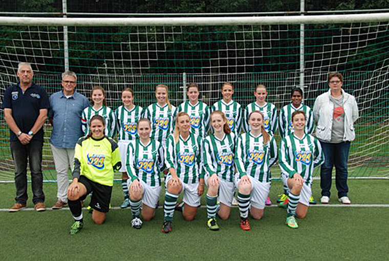 Samen met de twee trainers en een keeperstrainer hopen de dames van A.W.C. dat het damesvoetbal naar een hoger niveau kan worden gebracht.