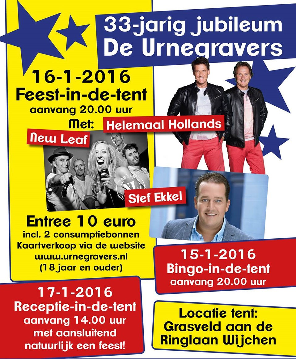 Kosten nog moeite zijn gespaard om grandioos programma samen te stellen. Zoals, New Leaf, Helemaal Holland en Stef Ekkel. Het hoeft natuurlijk geen betoog dat dit niet mogelijk was geweest zonder inbreng van onze sponsoren.