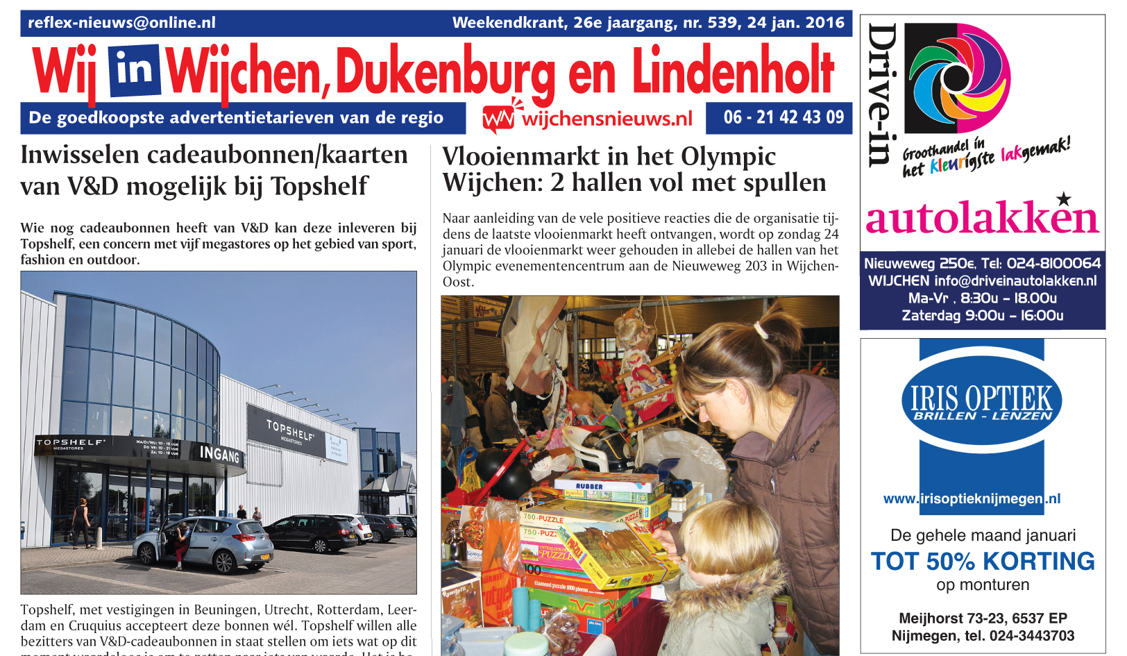 De huis-aan-huiskrant ‘Wij in Wijchen, Dukenburg en Lindenholt’ is weer van de drukpersen gerold en zal vanaf vandaag in uw brievenbus verschijnen. En natuurlijk staat deze krant vol nieuwtjes ook op onze website: