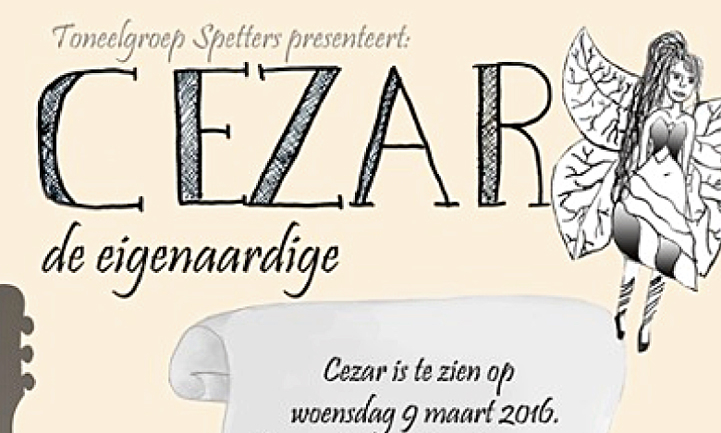 Na maanden van voorbereiding staat toneelgroep Spetters van het Maaswaal College weer op de planken. Ditmaal met het stuk 'Cezar de Eigenaardige'. Op woensdag 9 maart 2016 om 19.30 uur spelen de leden van de toneelgroep in de aula van het Maaswaal College.