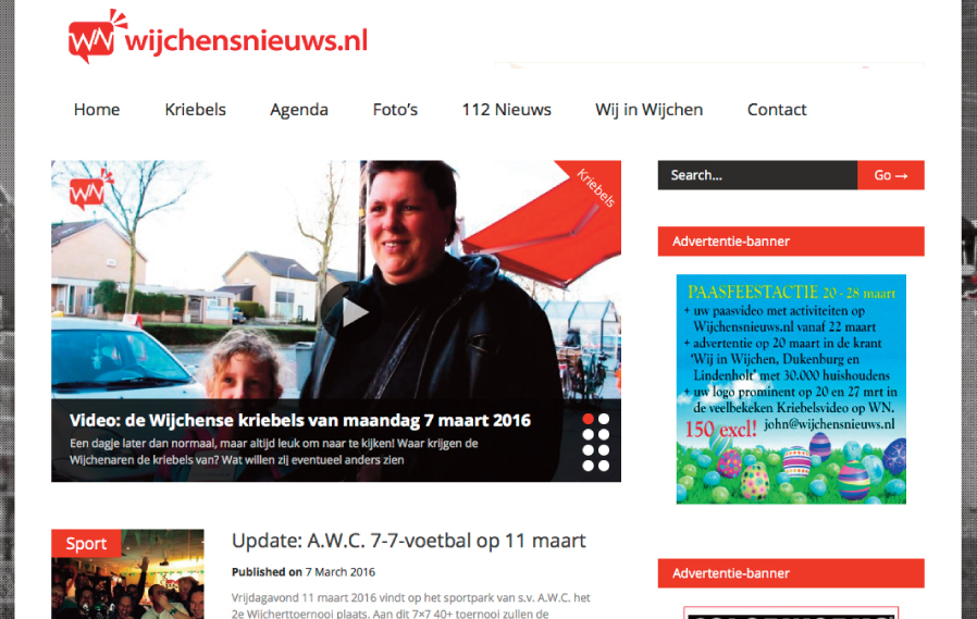Reflex Reclame biedt u het grootste ONLINE en OFFLINE netwerk in Wijchen met 300.000 maandelijkse pageviews via de website www.wijchensnieuws.nl en 30.000 huishoudens via de gratis huis-aan-huiskrant "Wij in Wijchen, Dukenburg & Lindenholt". Al vanaf 40 euro excl per maand! Voor deelnamegesprek mail: john@wijchensnieuws.nl