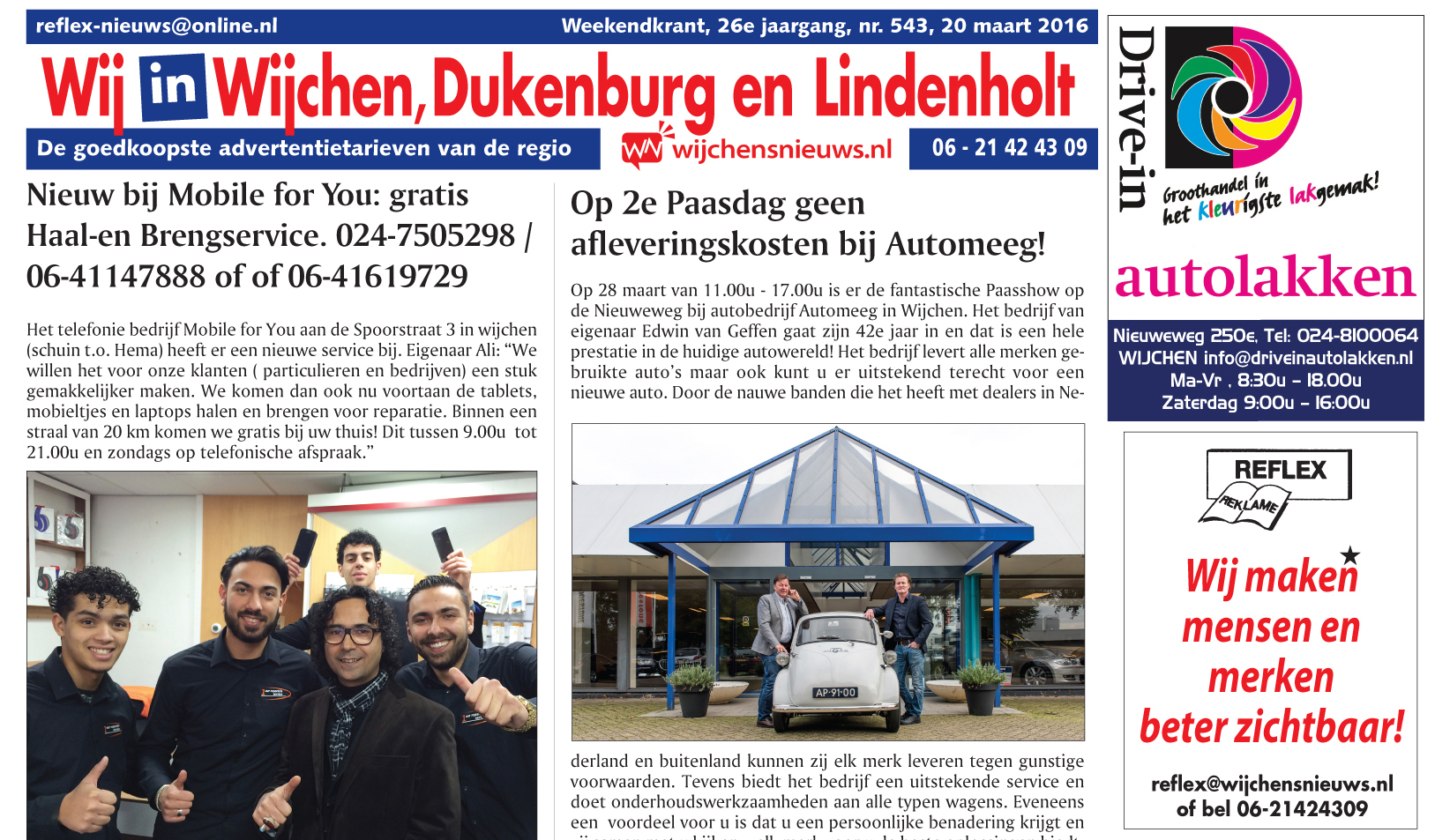 De huis-aan-huiskrant ‘Wij in Wijchen, Dukenburg en Lindenholt’ is weer van de drukpersen gerold en zal dit weekend in uw brievenbus verschijnen. En natuurlijk staat deze krant vol nieuwtjes ook op onze website: