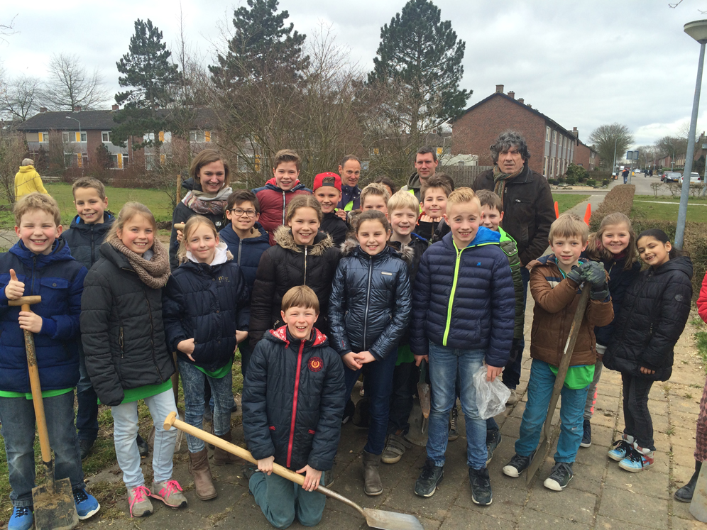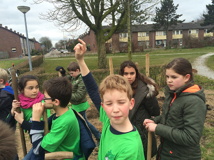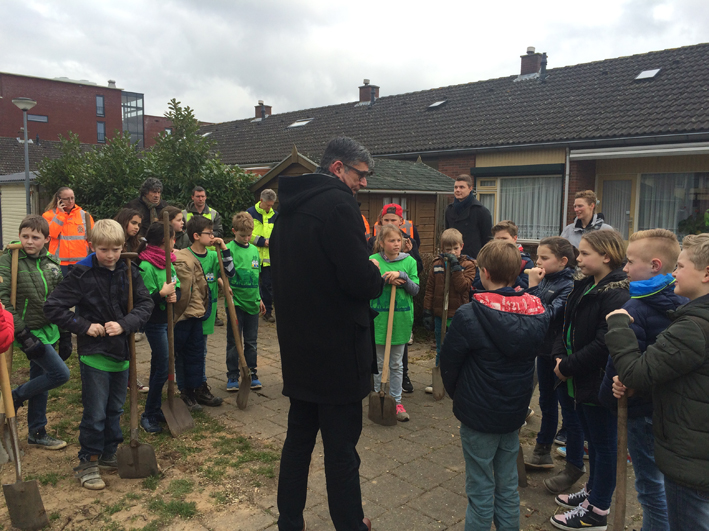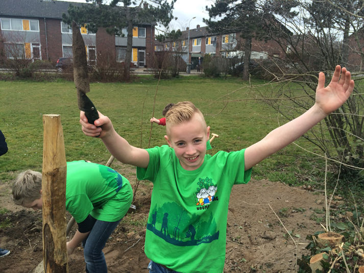 "Als bomen verplaatst worden, moet er een park voor ze komen want kapotmaken is niks." Dat zegt Max Ederling, leerling van groep 7a van de Boskriek tijdens de boomplantdag waar in de 70e straat Kraaijenberg en de 26e straat Homberg de kardinaalsmuts en de kornoelje werden geplant. Patricia van Wolveren, al 11 jaar de groenbeheerder van de gemeente Wijchen, reageert: "We zetten altijd al alle verplaatste bomen in parken of ruimtes waar de bomen nodig zijn. Maar een apart park zal er niet komen. Trouwens, alleen de zieke bomen rooien we. De groenideeën van Max zullen we echter zeker meenemen in bijvoorbeeld het Oosterparkplan wat we binnen nu en 2 jaar samen met de bewoners gaan maken."