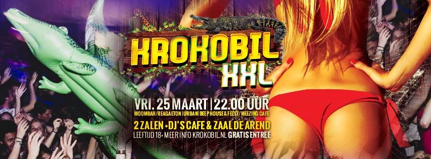 Krokobil XXL in zaal en café de Arend was op vrijdag 25 maart opnieuw een drukbezocht event. Moonbah, Reagaeton, Urban, Deephouse en feest/meezing-partymusic zorgden voor 'a lot of fun' bij de honderden jongeren.
