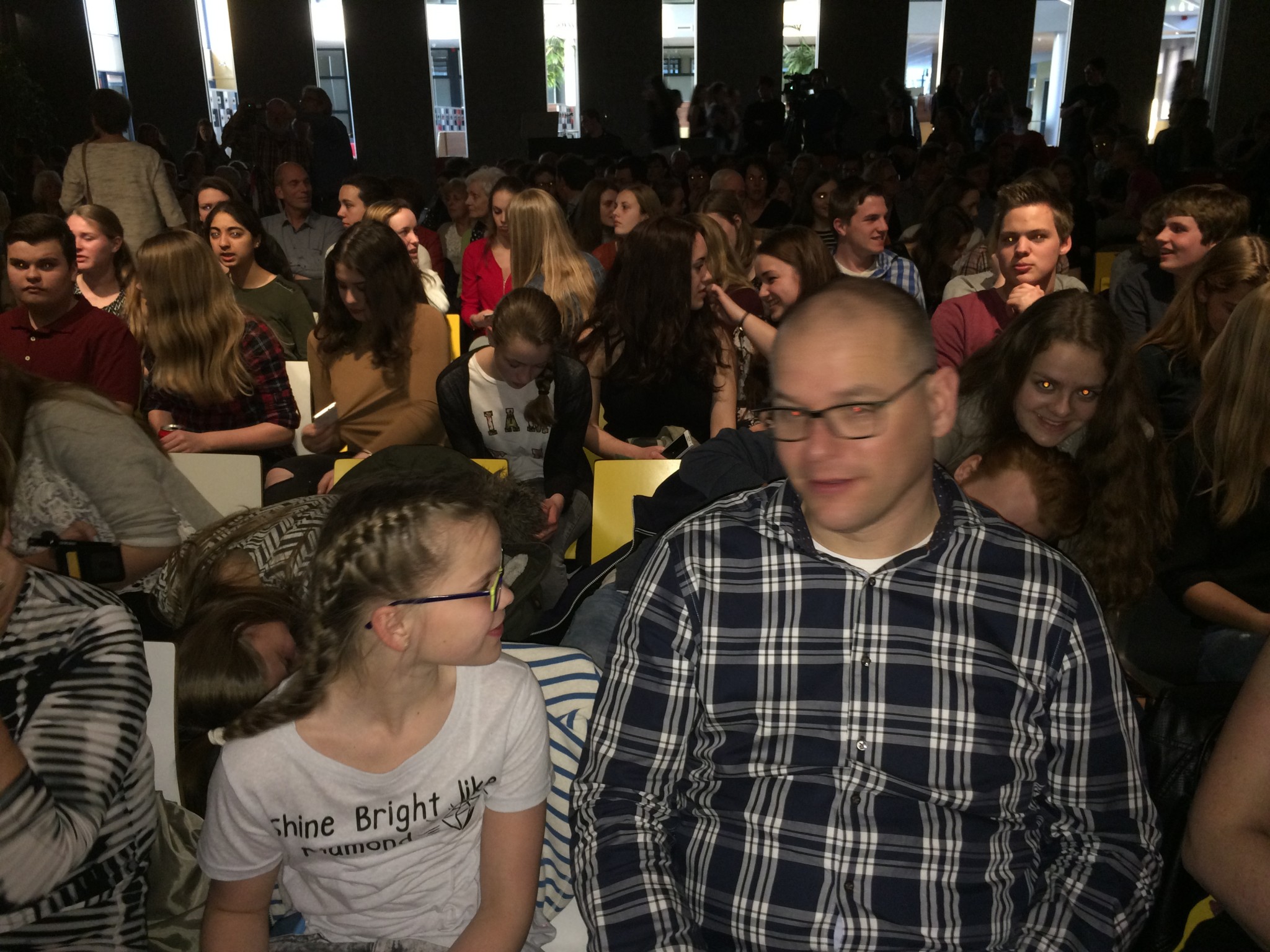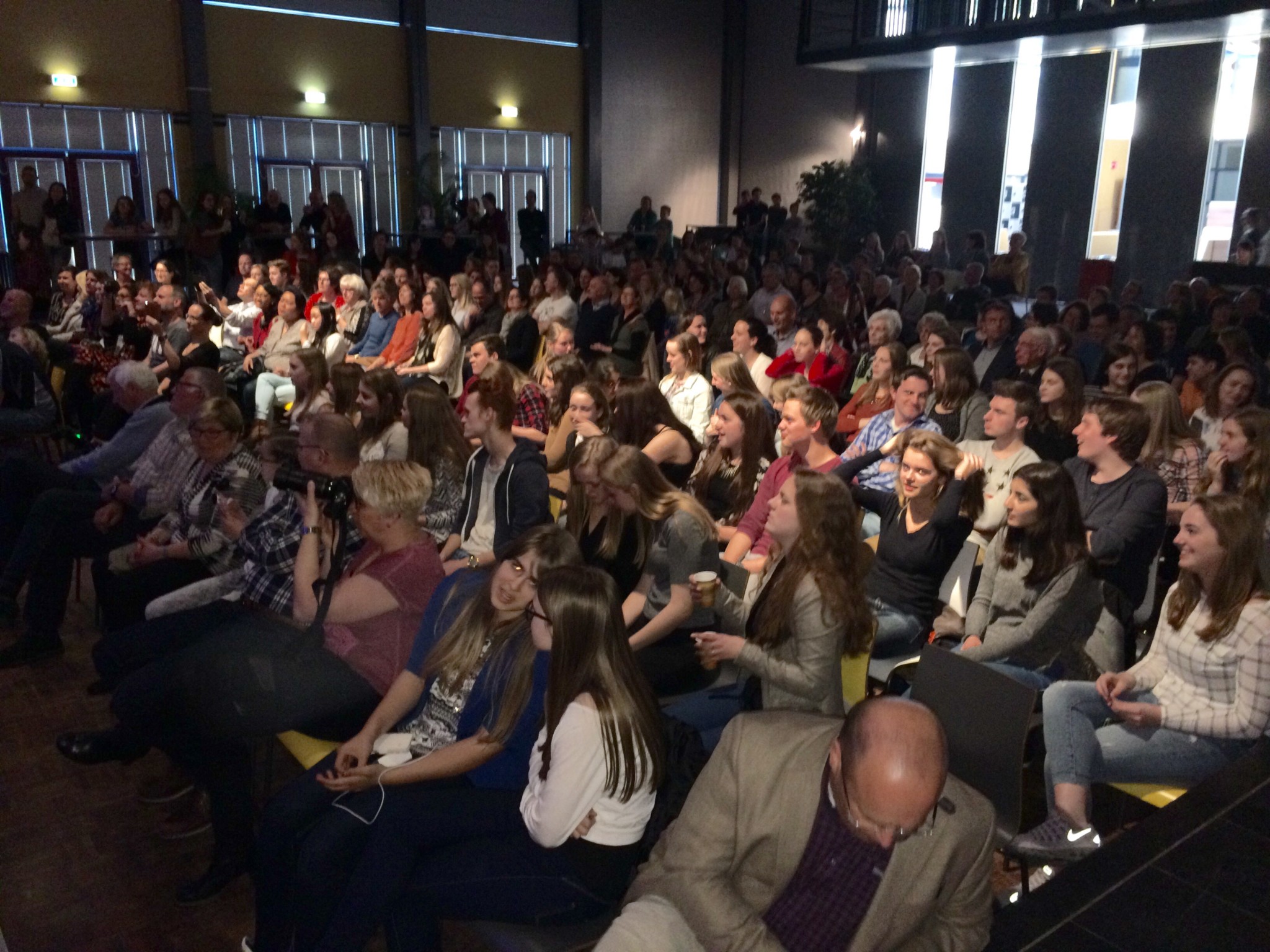 De 75 deelnemers en de 19 live acts van brugklassers, examenleerlingen en ook docenten van het Maaswaalcollege waren van een bovengemiddeld niveau! Dans, klassiek, rock ook akoestisch; het was er allemaal!