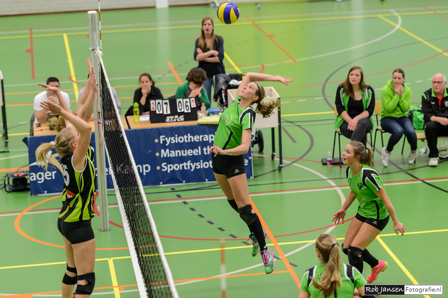 Opvallend was het goede spel van de spelverdeelster van Roosendaal. Haar setup’s en inzicht maakten het dat Roosendaal steeds beter ging spelen. De derde set liep tot 7-7 goed. Vanaf hier gaf Roosendaal een beetje gas en met name door de ervaring in deze ploeg, liep het ook hier van een leien dakje. Opvallend was dat Trivos totaal geen servicedruk kon leveren en dat het blokken ook te wensen over liet. Ondanks de mooie aanvallen van Lieke Lankheet, Manon Ottjes en Anne Veenstra lukte het niet om deze set binnen te halen.