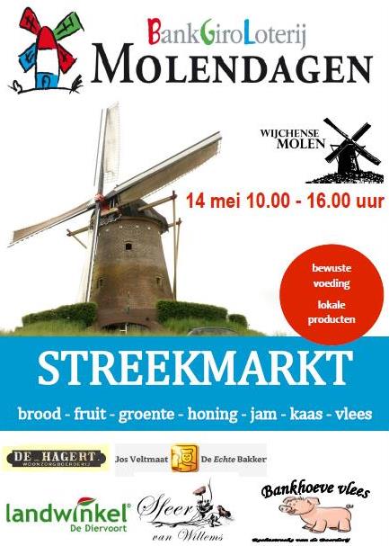 Daarnaast wordt er ook dit jaar op de molenberg een streekmarkt georganiseerd. Dit jaar zijn er nog meer lokale bedrijven met bewuste voeding en streekproducten uit de omgeving aanwezig op deze markt. Bij de kraampjes zijn heerlijke producten te vinden, zoals brood, fruit, groente, honing, jam, kaas en vlees. Al deze producten zijn lokaal en op een eerlijke manier gemaakt. Genoeg te zien en te proeven!