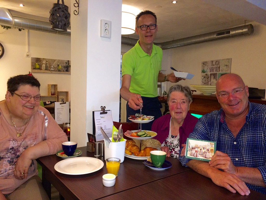 Het gebeurt niet al te vaak dat het 'Lekker in Wijchen'-surprise-cadeau zomaar weggegeven wordt. Deze keer echter besloot Ton Sijtsma zijn 'ontbijt voor 2' weg te geven. Ton: "Als vrijwillige netwerkcoach van de gemeente Wijchen zorgen we ervoor dat mensen die een steuntje kunnen gebruiken op weg geholpen worden. Op deze manier draag ik graag mijn steentje bij, want het is belangrijk dat we in Wijchen meer oog gaan krijgen voor mensen die wat gezelligheid kunnen gebruiken. De getrakteerde dames Nel Heerkens en Lenie van Heck vonden het geweldig! Ook Kaatje Jans kwam de leuke dames nog verassen met een lekkernij.