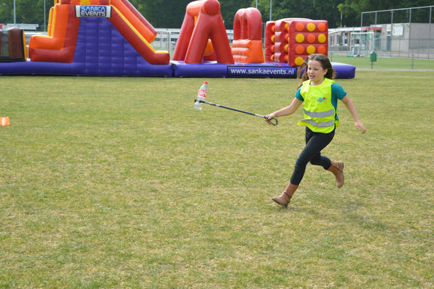 De BeestenBende-leden verzamelden woensdagmiddag om 15.00 uur bij het sportpark. In hun vertrouwde teams gingen ze op jacht naar zwerfafval – een koud kunstje voor de getrainde BeestenBenders. Vervolgens gingen de kinderen de strijd aan met elkaar bij de befaamde zwerfafvalrace: met de knijper zigzaggend het parcours afleggen zonder ‘hun’ afval te verliezen! Daarna wachtte een race met skippy-slangen en loopzakken. Bij deze spannende wedstrijden bleek dat teamwork de sleutel tot succes vormde. Tot slot was er de stormbaan die voor de sportieve en fanatieke BeestenBenders geen probleem vormde en tot veel plezier leidde. Ondanks dat niet iedereen tegelijk finishte waren er op deze middag alleen maar winnaars.