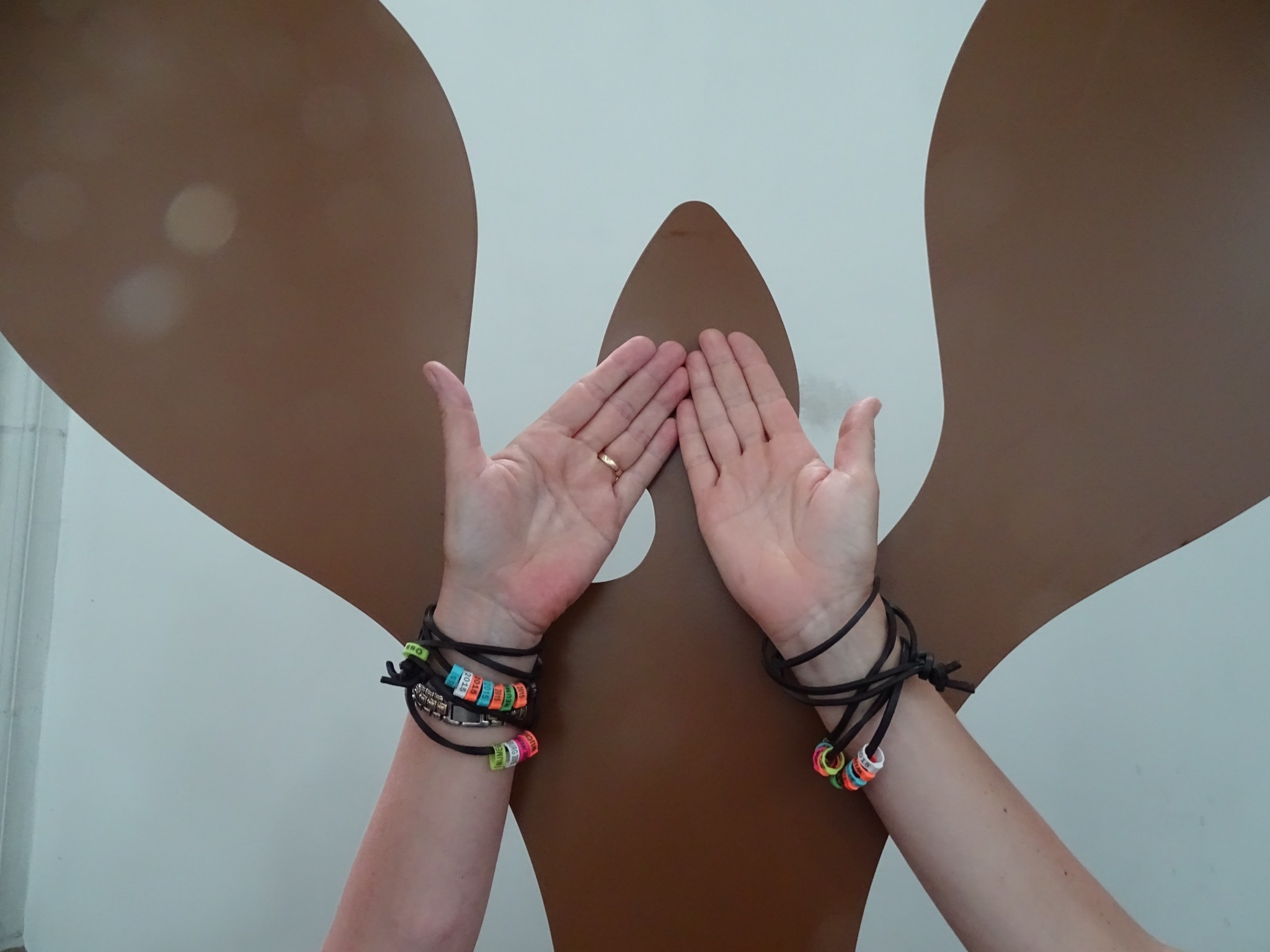 Foto Jan Heijmans: Twee pelgrims voor het beeldmerk van de Walk of Wisdom door Huub en Adelheid Kortekaas. Het logo draagt uit dat alle mensen een ‘zaailing’ zijn van de aarde met ieder een eigen, unieke kiemkracht.