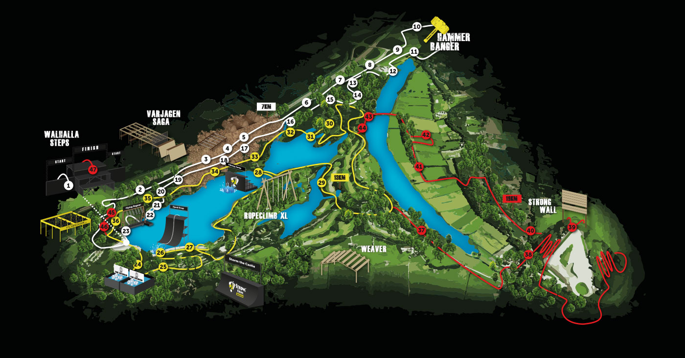 – 7, 13 of 19 km origineel Strong Viking obstacle run parcours